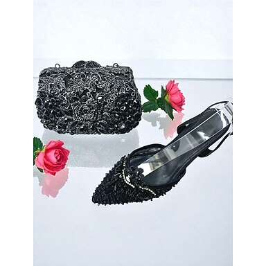 Damkutsch i polyester med paljett- och pärlutsklädsel, axelrem med kedja, stor kapacitet, flera färger – perfekt för bröllop och kvällsfester