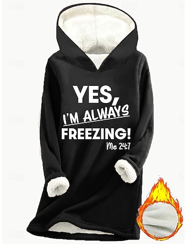 luvtröja dam fleece letter street dailywear tryck avslappnad comfrt hoodie långärmad mikroelastisk höst vinter höst & vinterkomfort, mjukt tyg som andas