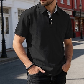 Herr Pikétröjor Ledigt Gata Kavajslag Kortärmad Grundläggande Modern Slät Knappar Andningsfunktion Sommar Vår Normal Svart Vinröd Marinblå Kamel Grön Ljusblå Pikétröjor