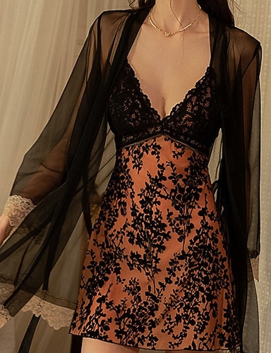 Dam Sexiga underkläder Sexiga kroppar Spetsknuten SpetsNightwearPolyester Ledigt Dagligen Hem Solid färg Elegant Vintage Svart Vin Höst Vinter