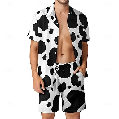 Herr Färgblocksmönster 2st Skjortor Set Casual skjorta Kortärmad Korta byxor Nedvikt Ledigt vardag Utomhus Hem Ledigt 3D-utskrift Sommar Svartvit