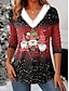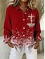 Jul Dam Blus Grafisk Snöflinga Vintage Tropisk Stylish 3/4 ärm Rund hals Båthals Vanliga toppar Dagligen Helgdag Mönster Rubinrött Vår Höst Vinter