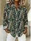 Julkvinnar T-shirt Långärmad Knapp Blus Grafisk Djur 3D Vintage Tropisk Daglig Ärm Blus Krage Vanliga Toppar Daglig Salvia Grön Brun Grön Sommar Vår Vinter