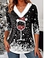 Jul Dam Blus Grafisk Snögubbe Julgran Vintage Tropisk Stylish Långärmad V-hals Vanliga toppar Dagligen Lappverk Mönster Svart Vit Vin Höst Vinter