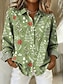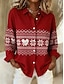 Jul Dam Skjorta Blus Grafisk Rutig Snöflinga Vintage Tropisk Stylish Långärmad Tröjkrage Vanliga toppar Dagligen Lappverk Knappar Mönster Rubinrött Kamel Grön Sommar Vår Höst Vinter
