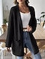 Dam Tröja Kofta Mode Streetwear Dagligen Ensfärgat Ribbad Öppen front Stickat Långärmad Långa toppar Sticka Helgdag Utekväll Helgen Svart Vit Höst Vinter