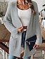 Dam Tröja Kofta Mode Streetwear Dagligen Ensfärgat Ribbad Öppen front Stickat Långärmad Långa toppar Sticka Helgdag Utekväll Helgen Vit Rodnande Rosa Höst Vinter
