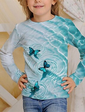 Pojkar 3D Fjäril T-shirt Långärmad Vår Höst Mode Grundläggande Barn 4-12 år Rund hals Utomhus Ledigt Dagligen Normal