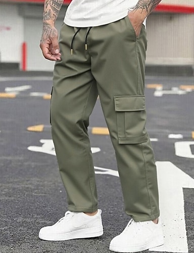 Herr Militärbyxor Långbyxor Snörning Elastisk midja Flera fickor Ensfärgat Vindtät Komfort Dagligen Utomhus Helgdag Streetwear Stylish Svart Armégrön