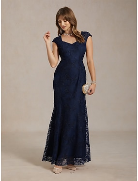 A-Linjeklänning Golvlång Bröllopsgästklänning Formella Klänningar Aftonklänning Mors Dag Klänning Kortsleeve Rundhals Elegant Vintage Fest Spets med Spets