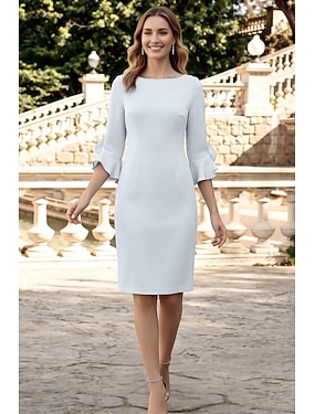 Sheath cocktailklänningar minimalistisk klänning cocktailparty knälängd 3/4-längd ärm juvelhals höstbröllopsgäst chiffon med volanger klänningar