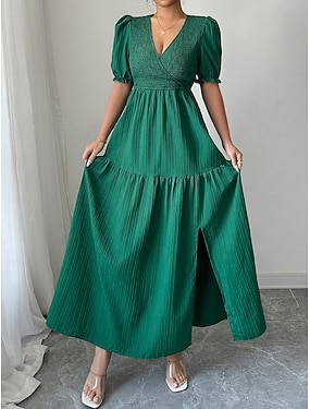 Dam Maxiklänning A linjeklänning Sommarklänning Ledigt Dagligen Normal Slät Kortärmad V-hals Grön Sommar Vår