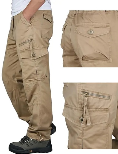Herr Militärbyxor Cargo byxor Taktiska byxor Arbetsbyxor Ficka med blixtlås Flera fickor Rakt ben Ensfärgat Utomhus Fullängd Dagligen Stylish Svart Khaki grön