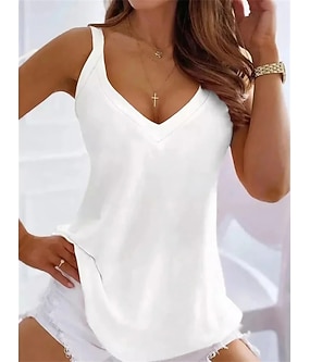 Kvinnors Spaghetti Top Halterneck Tunika Grundläggande Ärmös Regular Toppar V-ringad Avslappnad Vit