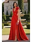 A-linje Golvlång Kvälls klänningar Balklänning Formell klädsel Elegant Färgblock Hög split Långärmad V-hals Formell Bröllopsgäst Bälte / skärp Satäng med Slits