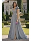 Åtsmitande Golvlång Pärlbroderad Formell klädsel Klänning för brudens mor Kvälls klänningar Balklänning med överkjol Formell klädsel Elegant Glittriga Silkig 3/4 ärm Kavajslag Bröllop Formell Caper