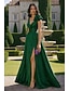 A-linje Svepsläp Kvälls klänningar Balklänning Formell klädsel Elegant Hög split Långärmad V-hals Formell Bröllopsgäst Satäng med Plisserat Slits