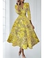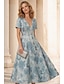 A-linje Telång Cocktailklänningar Elegant Vintage Blommig Halvlång ärm Kavajslag Trädgårdsfest Bröllop Ficka Satäng Djupt ringad rygg med Broderad blomma Broderad Ficka