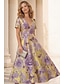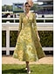 A-linje Ankellång Cocktailklänningar Elegant Blommig 3/4 ärm V-hals Bröllop Formell Jacquard med Blomtryck Plisserat