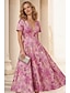 A-linje Ankellång Cocktailklänningar Elegant Vintage Blommig Halvlång ärm V-hals Bröllop Formell Rosa klänning Satäng Spets med Broderad Ficka