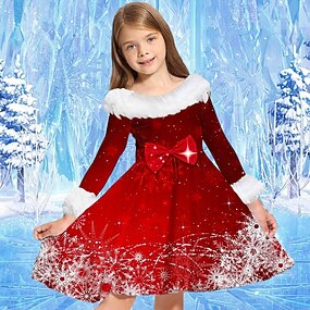 Barn Flickor Klänning Snowflake Klänning Snöflinga Långärmad Fest Ledigt Pälskrage Crewneck Förtjusande Dagligen Polyester Ovanför knäet Vardagsklänning Swingklänning A linjeklänning Höst Vinter 2-13