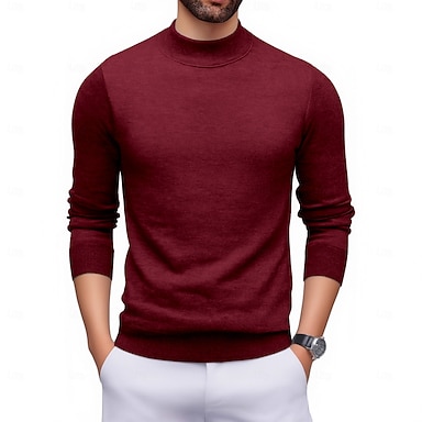 Herr Tröja Pullover tröja Ribbad Sticka Vanliga toppar Stickat Slimmad passform Slät Hög krage Stickat Nutida Ledigt Dagliga kläder Kläder Höst Vinter Svart Vit M L XL