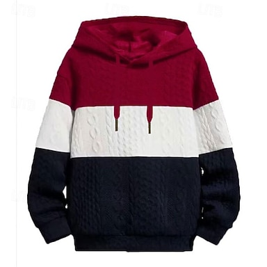 Herr Huvtröja Svart Vin Orange Ljusgrå Huva Färgblock Jacquard Lappverk Ribbad Strukturerad Sport & Utomhus Dagligen Helgdag Polyester Strukturerad Streetwear Grundläggande Ledigt Höst vinter Kläder