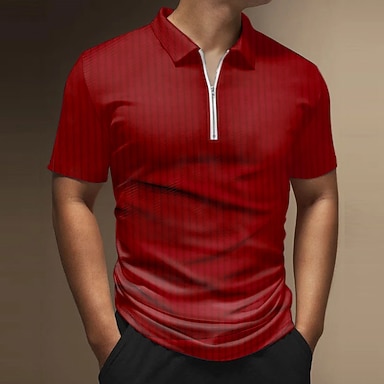 Herr Zip Polo POLO Shirt Utomhus Gata Nedvikt Kort ärm Mode Designer Randig Grafiska tryck Dragkedja Mönster Sommar Vår Normal Svart Vit Vin Armégrön Rubinrött Marinblå Zip Polo