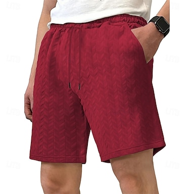 Herr Sommarshorts Beach Shorts Casual shorts Texturerade shorts Jacquard Snörning Elastisk midja Ensfärgat Komfort Knelängd Dagligen Utomhus Streetwear Semester Mode Svart Vit Microelastisk