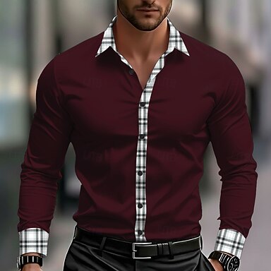 Herr Geometrisk Rutnät / Pläd Skjorta Knapp upp skjorta Avslappnad klänningskjorta Långärmad Mode Casual Utomhus Vardag Vår Höst Nedvikt 3D-utskrift krage skjortor Svart Vit Vin Mörkblå Grå