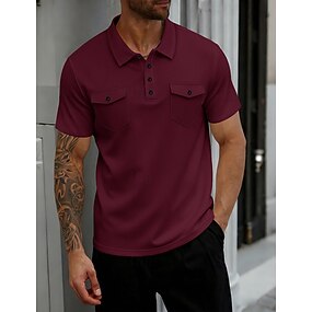 Herr Golftröja Våffelstickad pikétröja Ledigt Företag Klassisk Kortärmad Mode Modern Ensfärgat Knappar Sommar Vår Vår & sommar Normal Svart Vit Gul Vin Ljusblå Grå Golftröja
