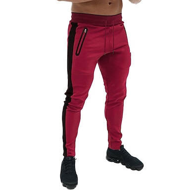 Herr Långbyxor Träningsbyxor Joggingbyxor Utomhus Fritids- Dagligen Sport Mjuk Bekväm Ficka Snörning Elastisk midja Färgblock Fullängd Mode Ledigt Sportkläder Vinrött Svart Microelastisk
