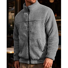 Herr Vinterjacka Teddyrock Vardaglig jacka Semester Dagligen Håller värmen Ficka Fleece Höst Vinter Slät Mode Streetwear Hög krage Normal Blå Svart Armégrön Kaffe Jacka