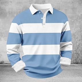 Herr Geometrisk Horisontella Strips Pikétröjor Themmal-skjortor Långärmad Polotröjor Kavajslag Ledigt Fritids- Helgdag Dagliga kläder 3D-utskrift Vår Höst Vinter Blå Marinblå Purpur