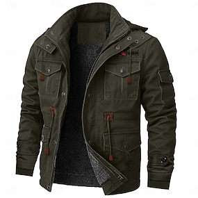 Herr Vinterkappa Vinterjacka Fleece-jacka Arbetsjacka Gata Ledigt Vindtät Håller värmen Höst Vinter Taktisk Bomull ArmyGreen Svart Khaki grön Jacka