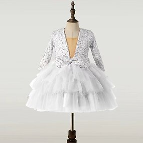 Barn Flickor Festklänning Paljett Långärmad Prestanda Bröllop Årsdag Förtjusande Prinsessa Bomull Ovanför knäet Festklänning A linjeklänning Flower Girls Klänning Höst Vinter 2-12 år Svart Vit