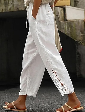 Dam Sommarbyxor 100% Bomuld Beskurna byxor Mode Streetwear Komfort Ankellång Medium Midja Slät Spets Bekväm Gata Dagliga kläder Utekväll Svart Vit Blå Grön Sommar Normal