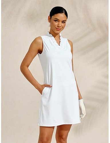 Dam Solid färg Tennisklänning med shorts Sportklänning Ärmlös Ficka Elastisk Svettavvisande Andningsfunktion Tennis Golf Pickleball Rundhals Klänningar Vit Tenniskläder