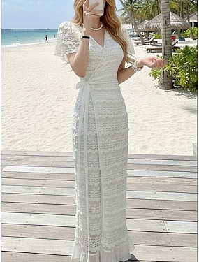 Dam Maxiklänning Sheath Dress Wrapklänning Ledigt Dagligen Strand Helgdag Normal Slät Kortärmad V-hals Vit Sommar Vår