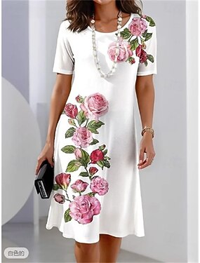 Kvinnors eleganta festkväll midi klänning med rundad hals kort ärm skiftklänning sommarklänning avslappnad daglig regular fit blommig grafisk vit rosa blå grön sommar vår höst