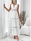 Dam Maxiklänning Spetsklänning Vit klänning Vardagsklänning Elegant Mode Modern Utomhus Semester Fest Normal Slät Ärmlös V-hals Vit Sommar Vår
