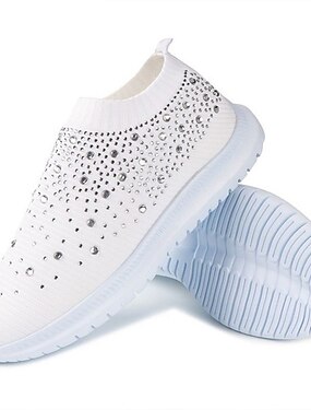 Damsneakers med rosa strassmönster - ventilerande flyknit-ovandel, lättviktiga &Glittriga sportskor för promenader, jogging, resor, vardagsbruk &lätta träningspass