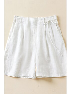 Dam Bomulds Blanding Konstbomullslinne Shorts Byxor Streetwear Ledigt Kort Naturlig Slät Ficka Elastisk midja Utomhus Bekväm Gata Utekväll Magenta Svart Vit Grön Sommar Normal