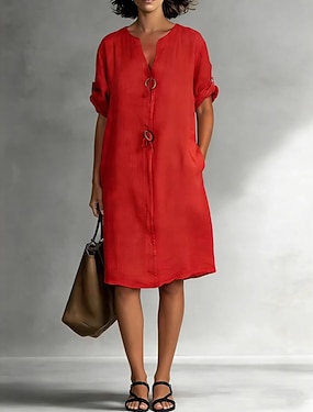 Kvinnors linne-liknande faux bomull linne mini klänning sommarklänning avslappnad daglig regular fit grafisk 3/4-lång ärm rund hals vit rosa grön ljusgrå sommar