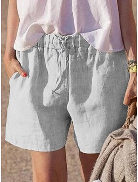 Dam Konstbomullslinne Kinesiska Shorts Sommarshorts Semester Mode Streetwear Kort Hög midja Slät Ficka Elastiskt midjeband Bekväm Mjuk Elastisk Utomhus Gata Svart Vit Kaki Grå Sommar Vår Normal