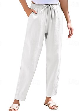 Dam Konstbomullslinne Sommarbyxor Byxor Lättvikt Ledigt Ankellång Mellanhög midja Slät Ficka Mateial som andas Bekväm Oelastisk Ledigt / vardag Helgen Safirblå Svart Vit Kaki Sommar Vår Normal