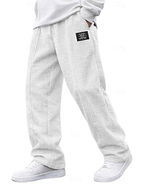 Herr Linne Byxor Långbyxor Sommarbyxor Casual byxor Snörning Elastisk midja Rakt ben Slät Komfort Andningsfunktion Fullängd Ledigt Dagligen Utomhus Mode Klassisk Stil Svart Vit Oelastisk