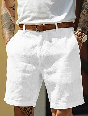 Herr Shorts Linne Shorts Sommarshorts Knappar Framficka Rakt ben Slät Komfort Andningsfunktion Knelängd Utomhus Semester Fest Mode Grundläggande Svart Vit