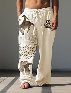 Herr Geometriska mönster Grafiska tryck Långbyxor Casual byxor Sommarbyxor Medium Midja Vintage Etnisk Stil Retro / vintage Ledigt Dagligen Helgdag Snörning Elastisk midja 3D-utskrift Vår & sommar