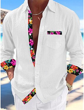 Herr Skjorta Strandskjorta Knapp upp skjorta Viking Utomhus Semester Svart Vit Rodnande Rosa Orange Långärmad Kinakrage Vår & Höst Kläder Mönster